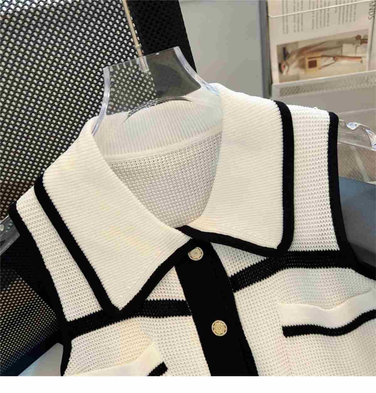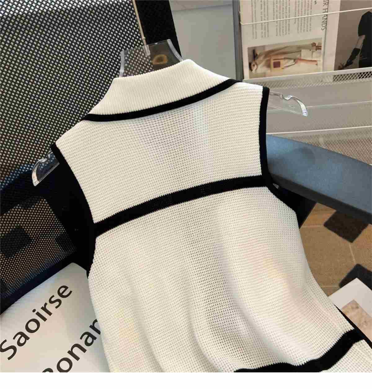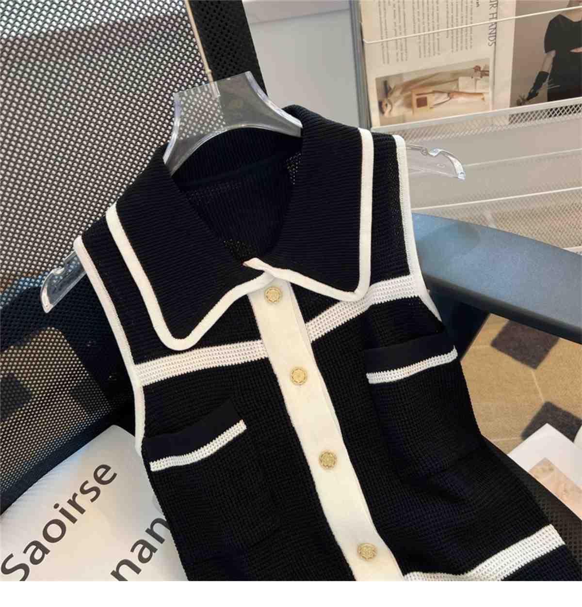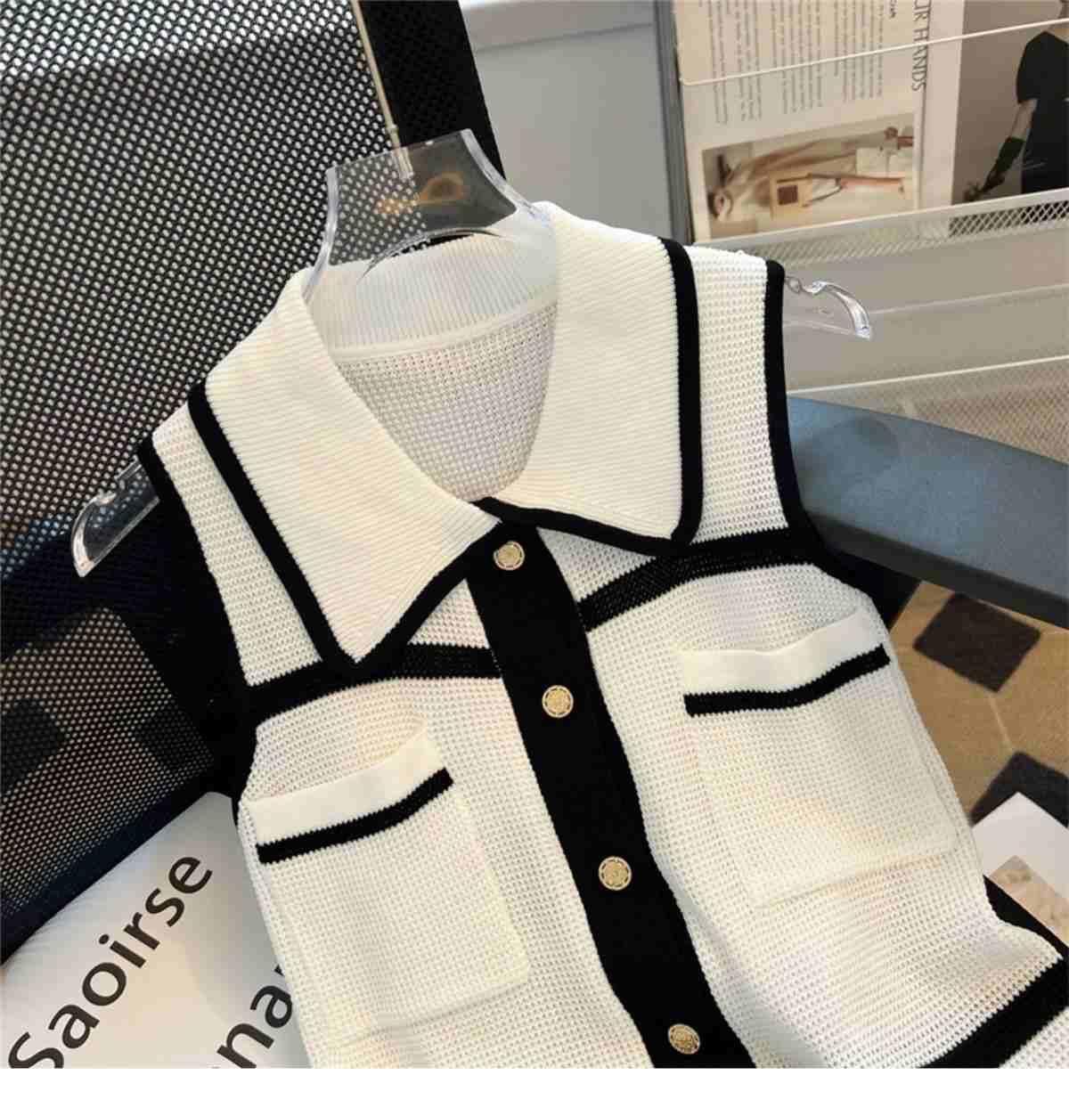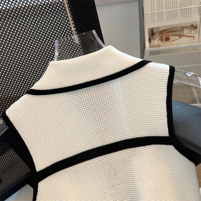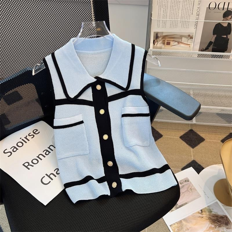 Classic Style Chic Contrast Color Lapels Sleeveless Knitwear