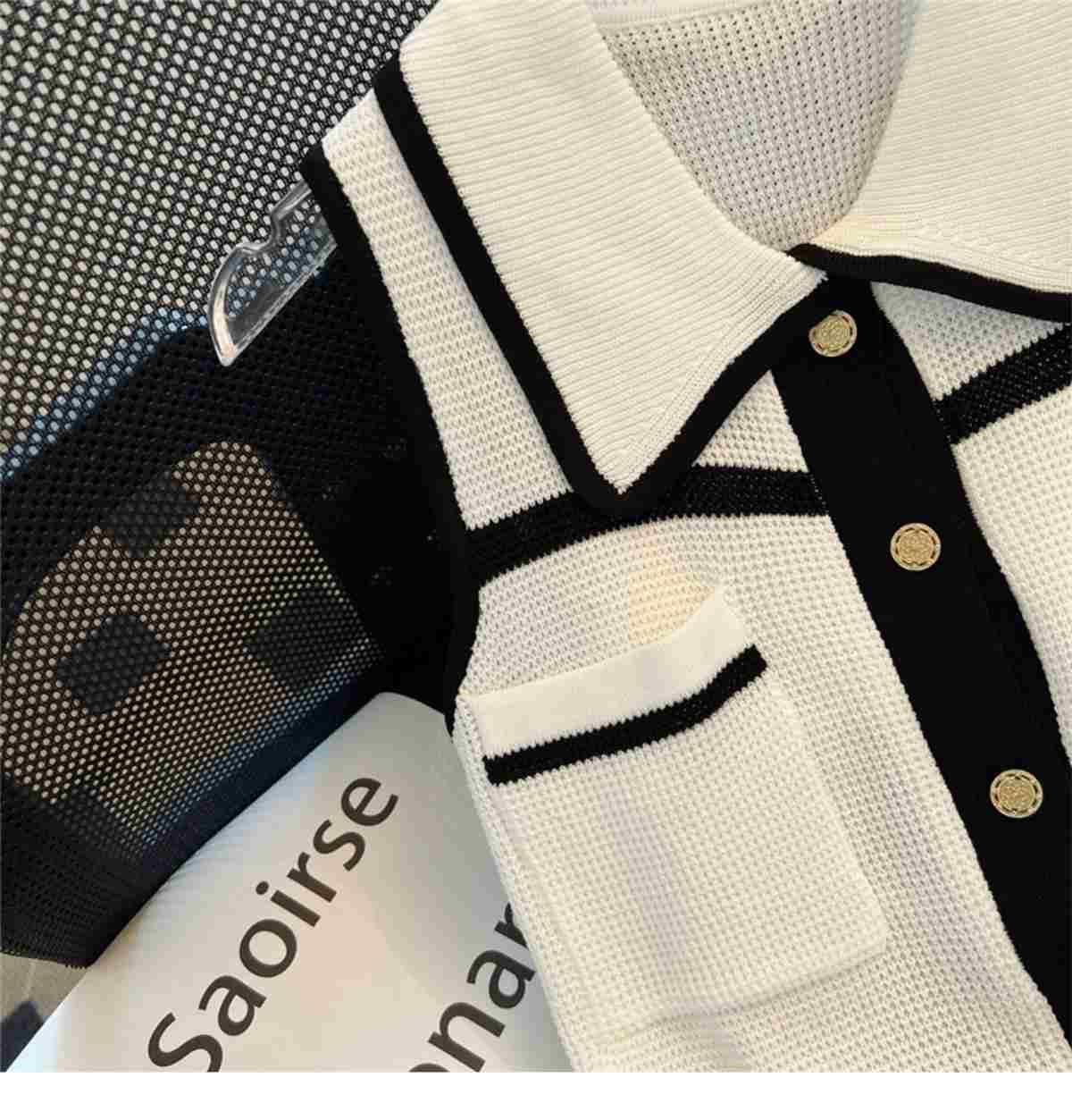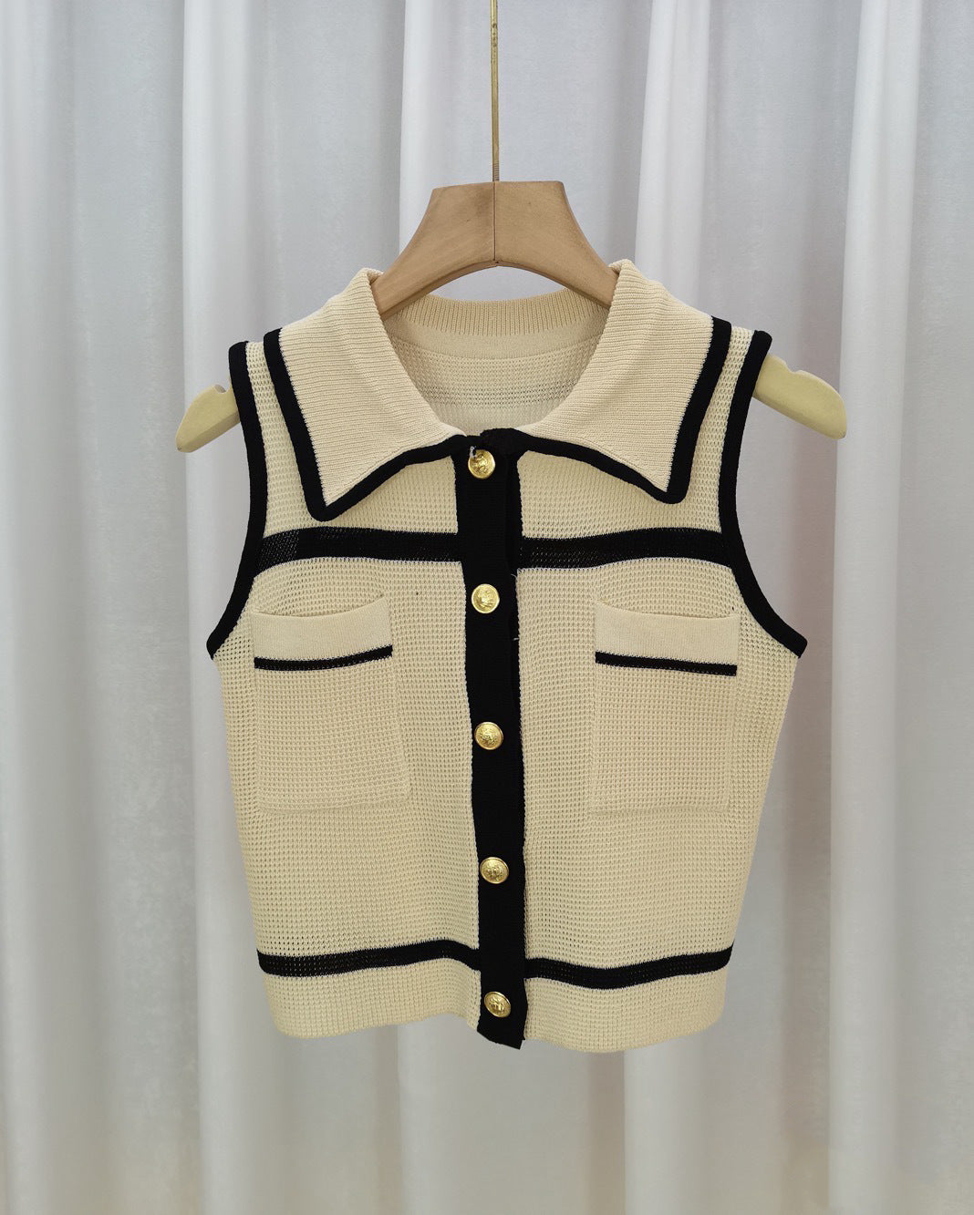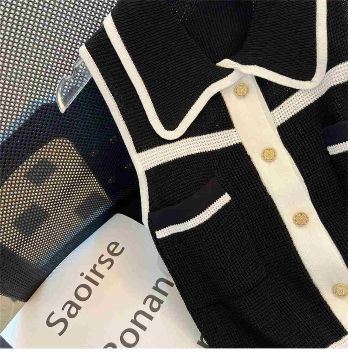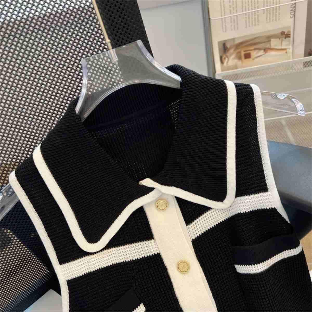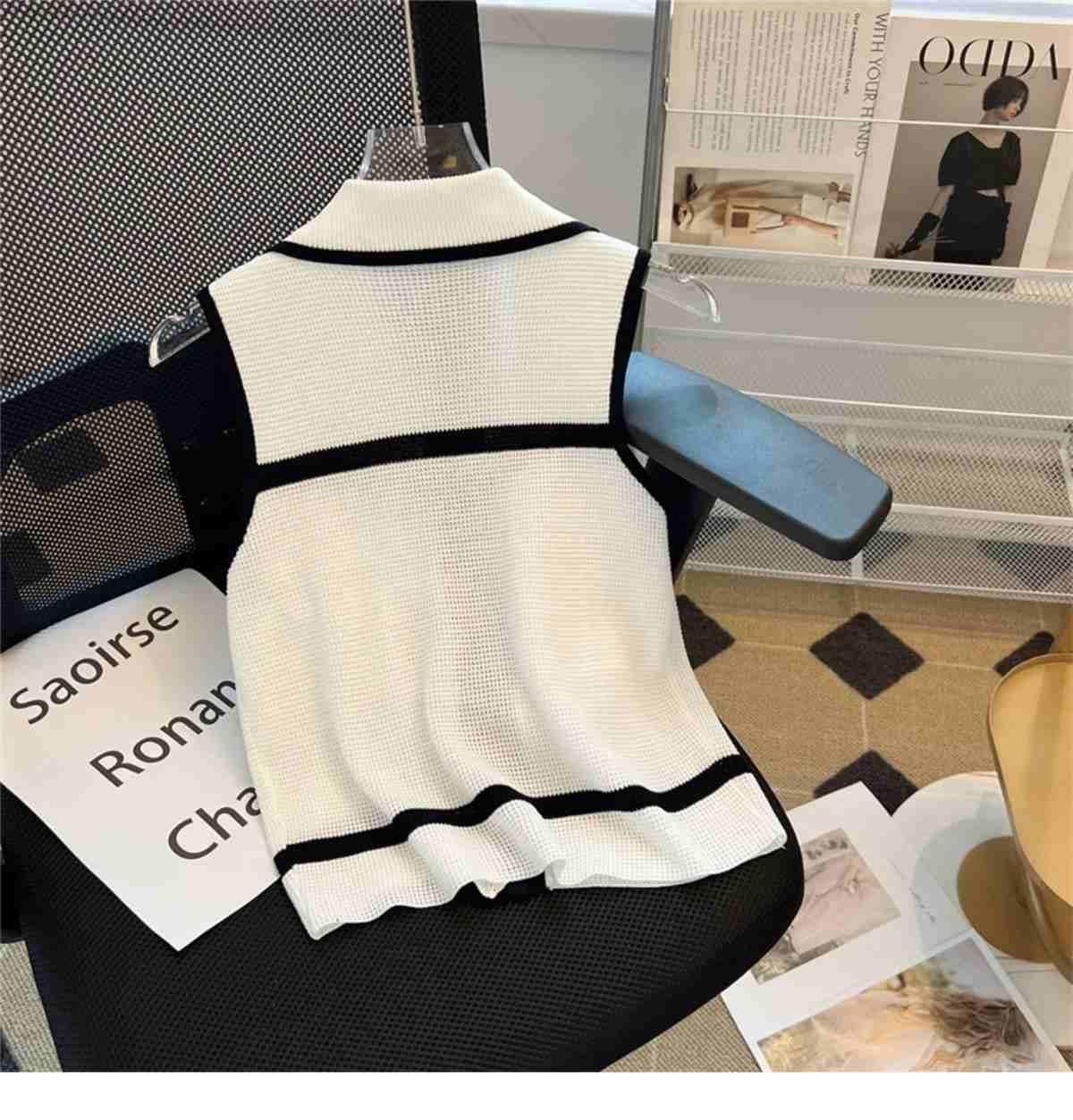 Classic Style Chic Contrast Color Lapels Sleeveless Knitwear