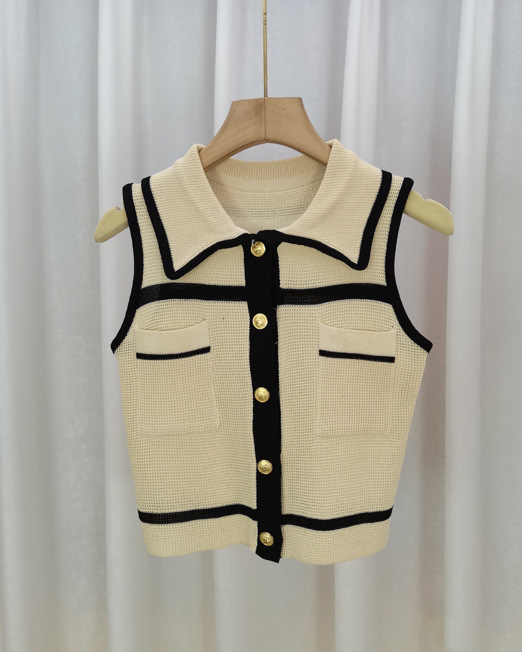 Step up your wardrobe with this stylish cropped vest! This trendy apricot sleeveless knit top features bold buttons and a flattering cut that instantly upgrades any outfit. Ideal for layering or wearing alone during spring and summer.